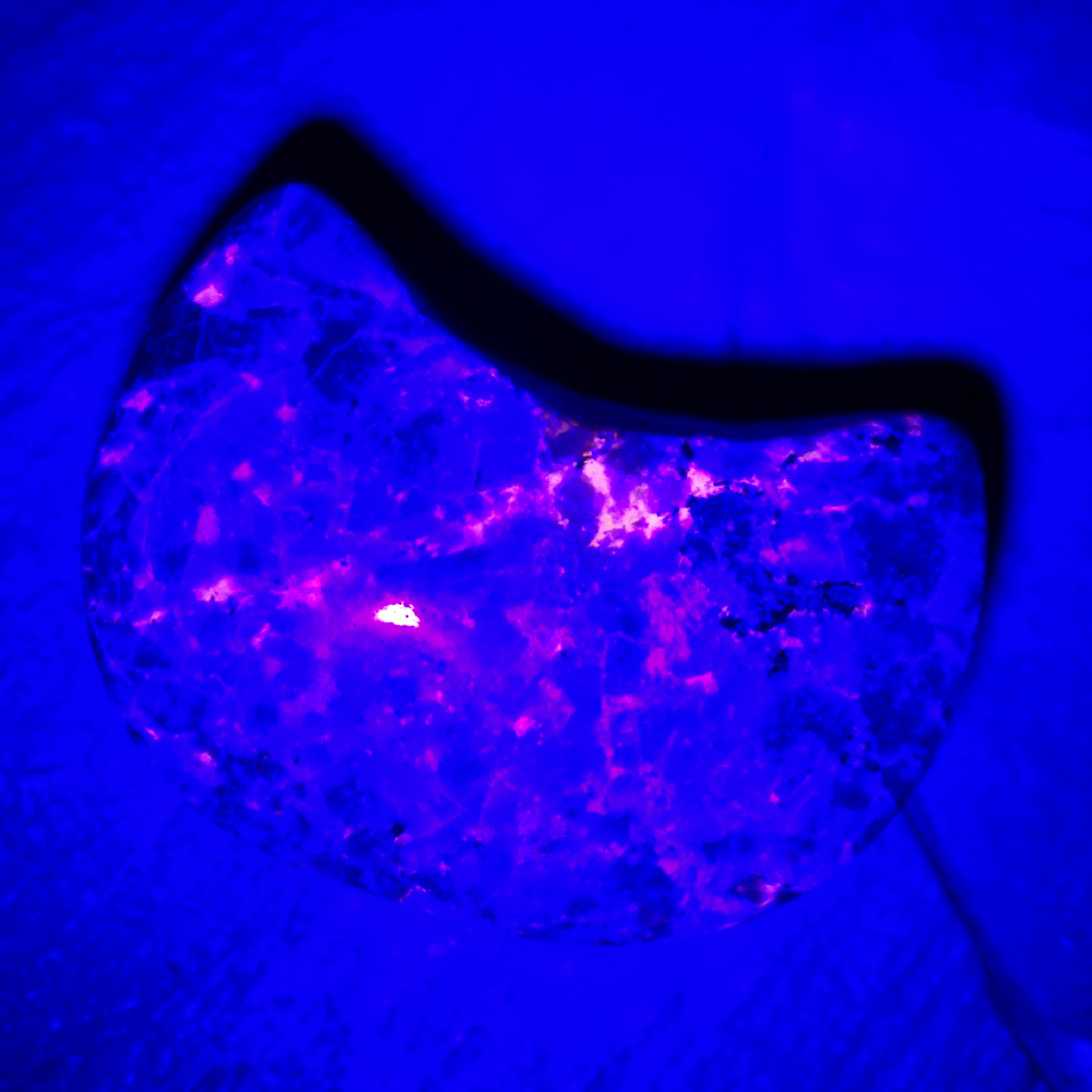 Hmatka ze sodalitu yooperlitu - fluorescentní pod UV