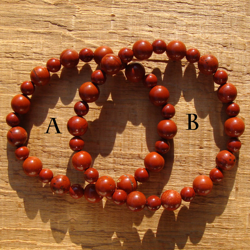 Červený jaspis: symbolizuje základní elementární sílu "Matky Země". Uzemňuje energii a napravuje nepříznivé situace. Nabízí ochranu před fyzickou hrozbou i psychickými útoky a také dokáže odvrátit nehody nebo smůlu. Používáním červeného jaspisu vrátíte negativní energie zpět k tomu, kdo je vyslal. Vynáší na světlo problémy ještě dřív, než se příliš rozrostou, a nabízí vhled do těch nejobtížnějších situací. Představuje ideální "kámen nářků", který dokáže uklidnit rozbouřené city, pokud si s ním pohráváme. Vsuneme-li jaspis pod polštář, nabíjí celý organismus energií a pomáhá rozpomenout se na obsah snů. Podněcuje činnost základní čakry a účastní se znovuzrození. Pomáhá vám udržet si dobrou náladu a čelit všemu, co vám den přinese.