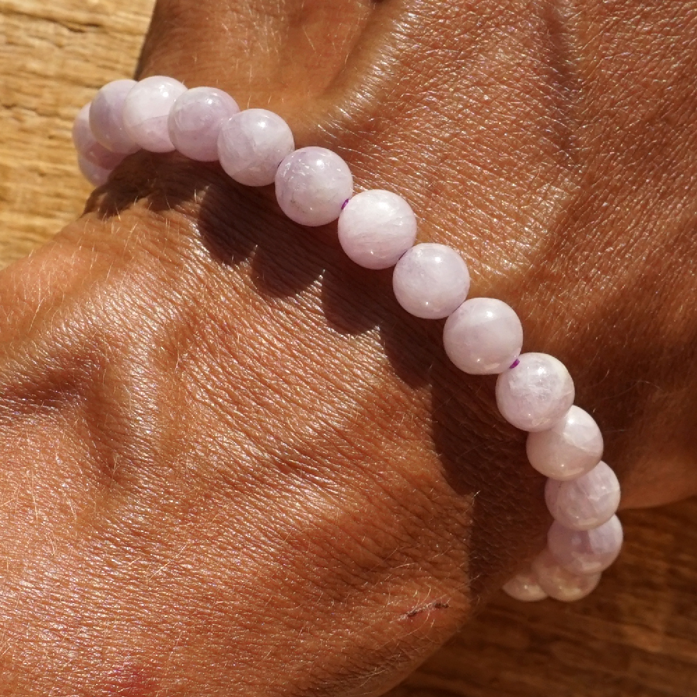 Kunzit: poklidný kunzit je mimořádně duchovní kámen s vysokými vibracemi. Probouzí k činnosti srdeční centrum a vyvolává ničím nepodmíněnou lásku. Probouzí myšlenky vedoucí k lásce a vzájemné komunikaci. Vyzařuje mír a propojí vás s universální vesmírnou láskou. Kunzit navozuje hluboké stavy a soustředěné stavy meditace. Je velice prospěšný pro každého, kdo zjistí, že se do meditace dokáže ponořit jen s obtížemi. Současně zvyšuje tvůrčí schopnosti. Kunzit vede k pokoře a zvyšuje ochotu sloužit druhým.