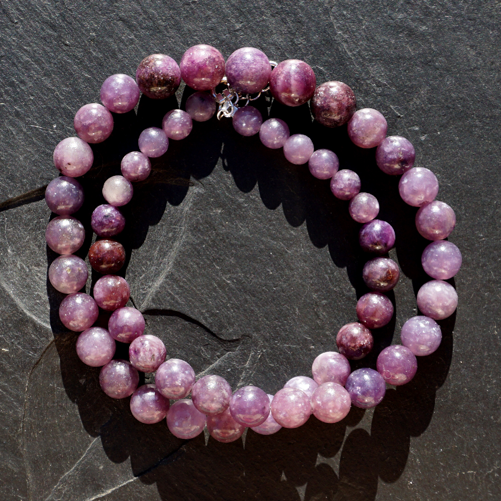 Lepidolit: odstraňuje elektromagnetické znečištění. Měl by ležet na počítačích, aby pohlcoval jejich vyzařování. Lepidolit vždy trvá na tom, že bude použit pouze k dosažení nejvyššího dobra. Odstraňuje všechno negativní. Aktivuje a otevírá krční čakru, třetí oko a korunní čakru. Pročišťuje zablokování a přináší vesmírnou moudrost. Tento kámen pomáhá při šamanských cestách a zprostředkovává přístup k záznamům duše. Naladí vás na myšlenky a pocity pocházející z jiných životů, které jsou příčinou bloků v současném životě. Současně vás dokáže posunout o kus dál do budoucna.