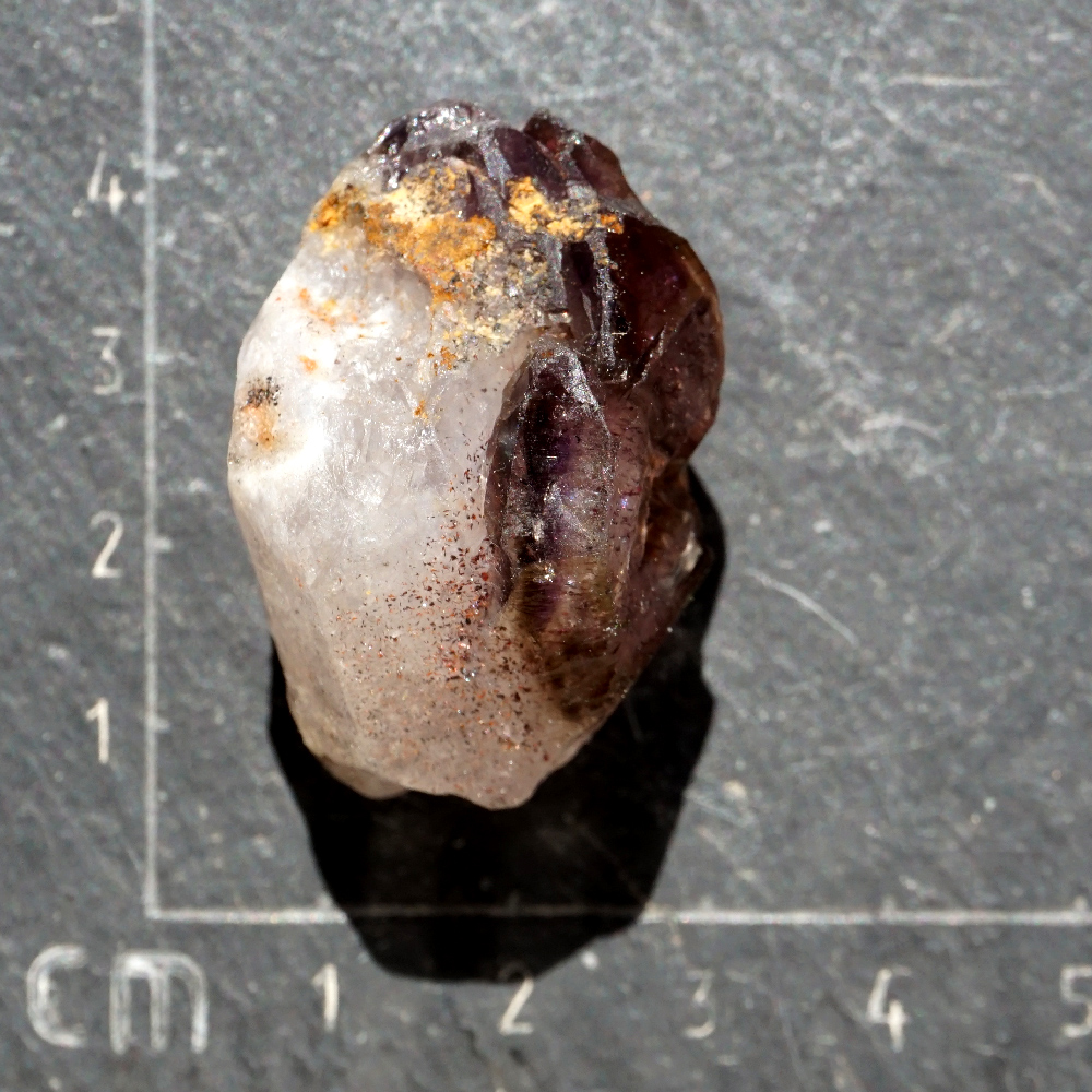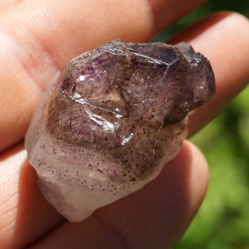 Kouřový elestiální ametyst s lepidokrocitem na křišťálu