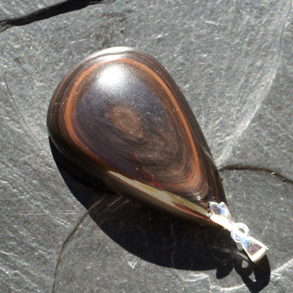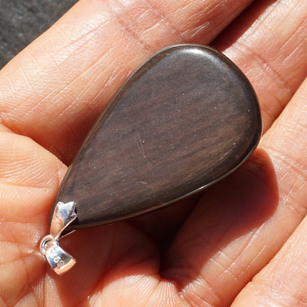 Mahagonový lesk: tato variantna mahagonového obsidiánu v sobě ukrývá lehčí a jemnější vibrace, které citlivě vynášejí problémy ny povrch a transformují je. Nabízí silnou ochranu auře a světelnému tělu. Současně dodává auře nádherný lesk.