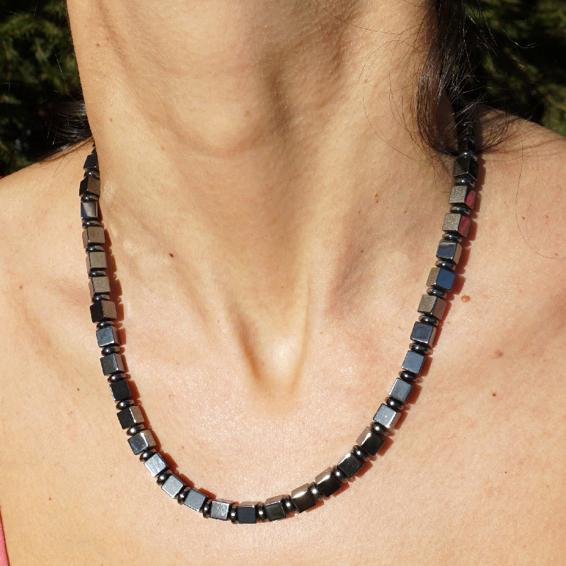Hematit: je zvláště účinný při uzemnění a jako ochranný kámen. Uvádí do rovnováhy tělo, mysl i ducha. Pokud se použije během cest mimo tělo, chrání duši a vede ji zpátky do hmotného těla. Nese v sobě silný element jang a zajišťuje rovnováhu meridiánů. Odstraňuje vše nepříznivé a brání negativním energiím vstupovat do aury, čímž v těle nastoluje klid, mír a harmonii.