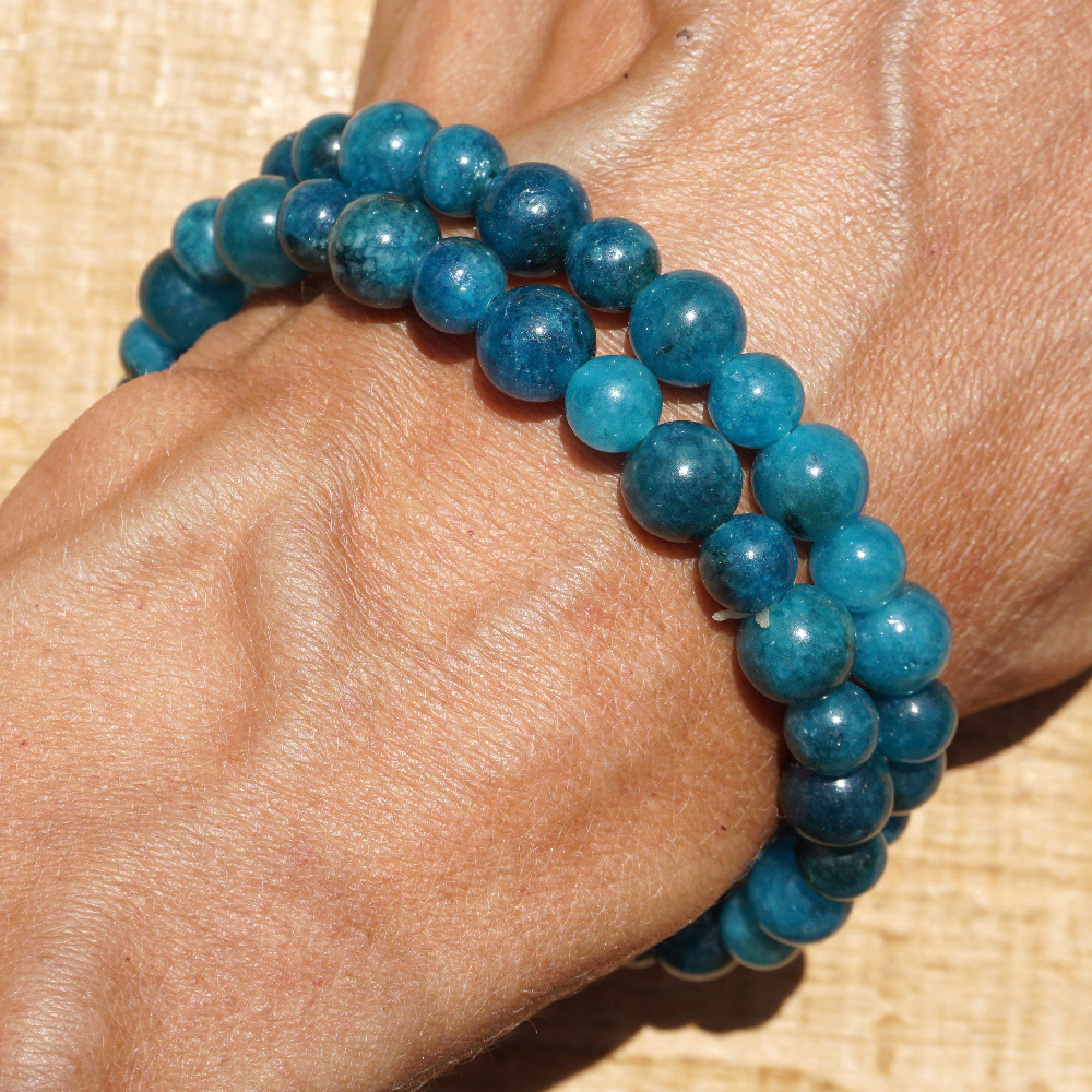 Apatit: představuje styčný bod mezi vědomím a hmotou. Je to kámen, který podporuje filantropické sklony a vzbuzuje touhu po službě druhým. Apatit je naladěný na budoucnost, ale přesto dokáže spojovat člověka s jeho minulými životy. Je zdrojem psychických darů a duchovního naladění. Prohlubuje meditaci a zvyšuje tzv. hadí sílu neboli kundalini. Napomáhá komunikaci a sebevyjádření ve všech rovinách. Psychologicky apatit zvyšuje motivaci a vytváří rezervy energie. Vyvolává otevřenost, usnadňuje kontakt s ostatními lidmi, podněcuje k otevřenému jednání. Potlačuje lhostejnost a nepřátelství. Odstraňuje negativní postoje. Pomáhá hyperaktivním a autistickým dětem.
