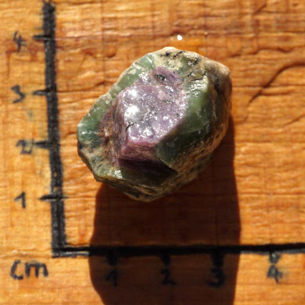 Rubín v zoisitu: symbolizuje dvojí protiklad zelené a červené, klid a aktivitu, napětí a uvolnění, klad a zápor. "Cítí" okamžité potřeby svého nositele, uspokojuje je a usměrňuje ho směrem k pozitivním životním hodnotám. Je tedy univerzálním pomocníkem v pravém slova smyslu. S jeho pomocí lze jistěji kráčet po stezce života a snadněji dosáhnout vytyčených cílů. Jeho působení je velmi jemné. Posiluje paměť, zlepšuje koncentraci, pomáhá překonat deprese a pocity strachu. Pečuje o duševní rovnováhu a reálné nazírání na problémy tohoto světa. Chrání před přílišným sebevědomím a nepředloženým jednáním.